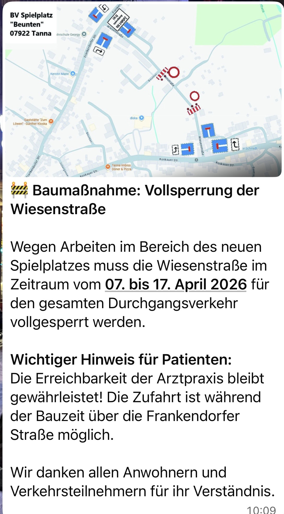Mitteilung der Stadt Tanna: